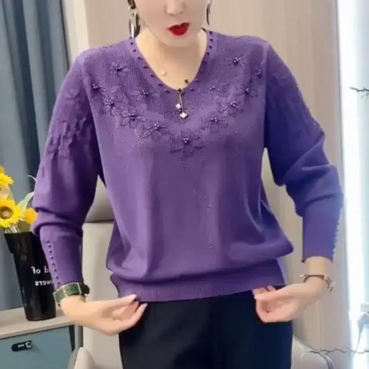 Hot Stamping Fashion Knitwear Women's Long Sleeved V-neck Sweater Base Shirt Top pullover oversized sweater tops y2k clothes
